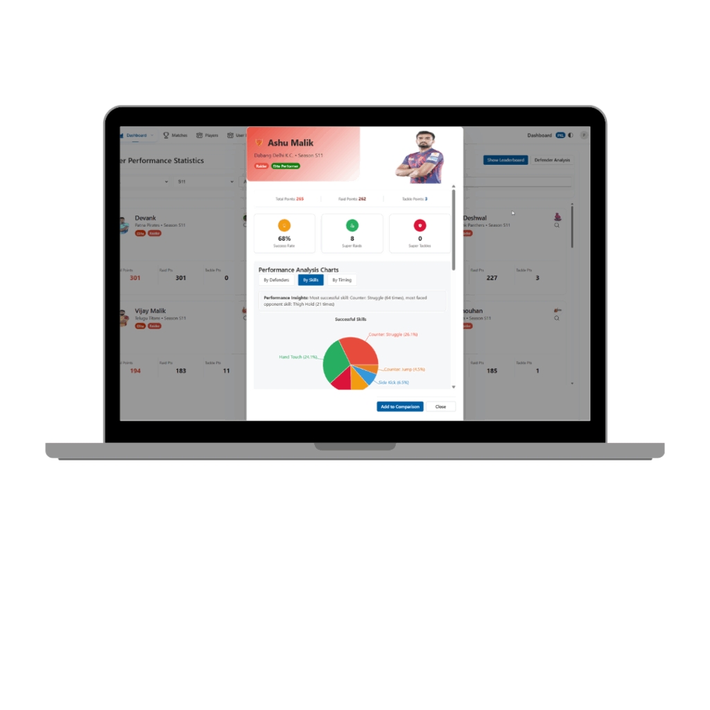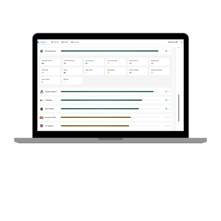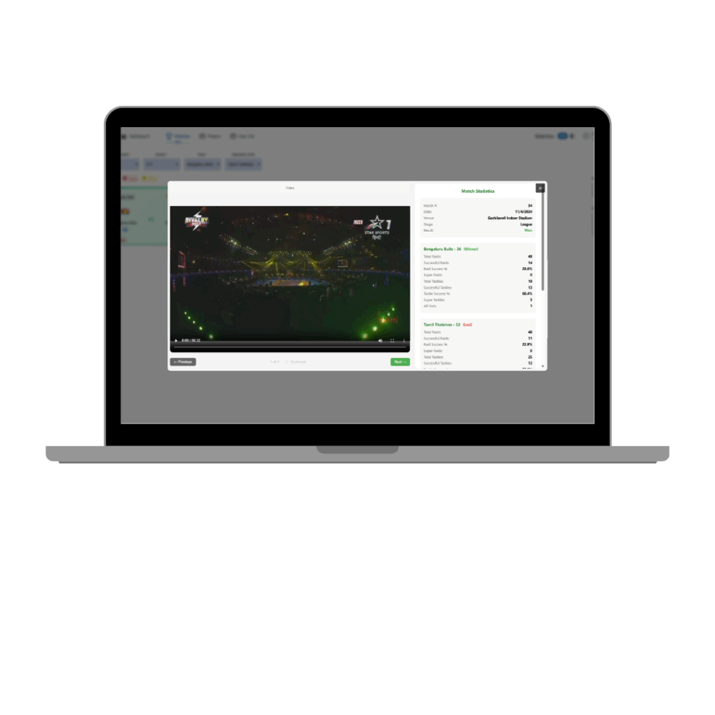 Our intuitive dashboard streamlines your Kabaddi analysis, bringing all match insights together in one place. Access them anytime, anywhere, with ease and comfort!